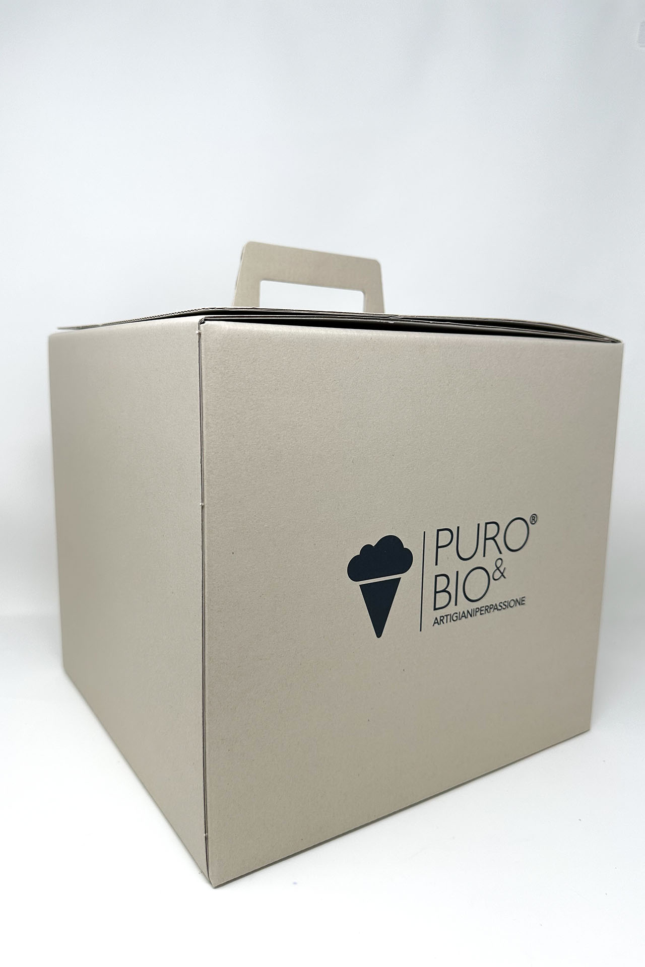 Box per dolci logato Puro&Bio in cartone avorio 27x27x25h
