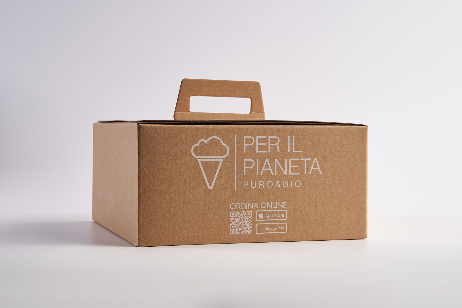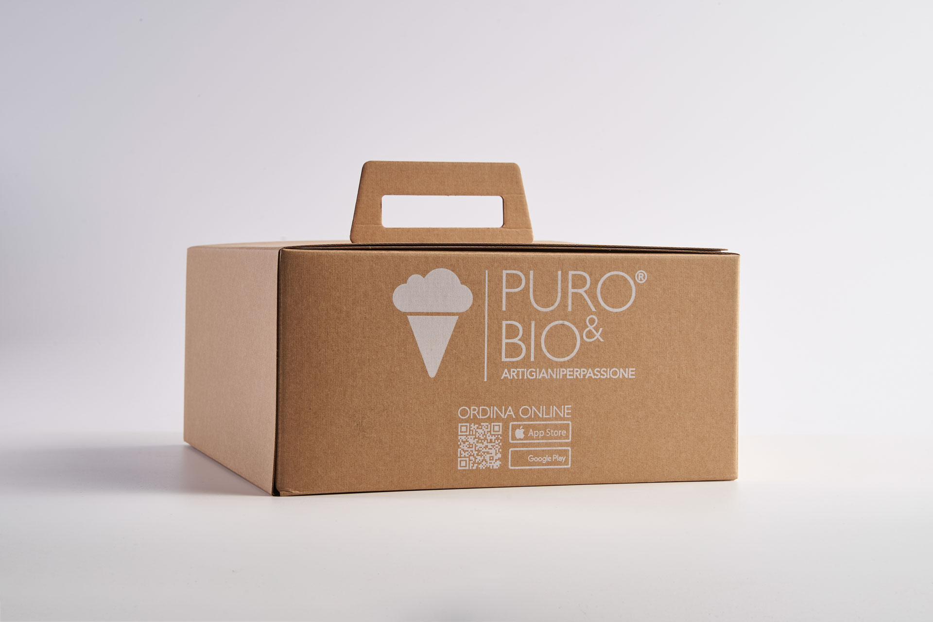 Porta torte logato Puro&Bio in cartone avana riciclabile 27x27x13h