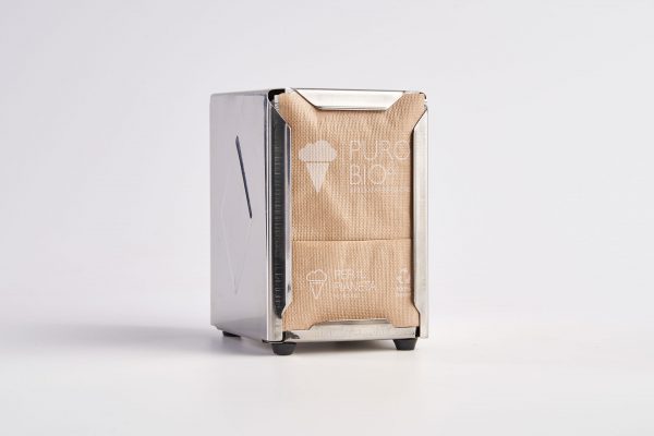 Tovaglioli da banco 17x17 logati Puro&Bio in carta avana riciclabile