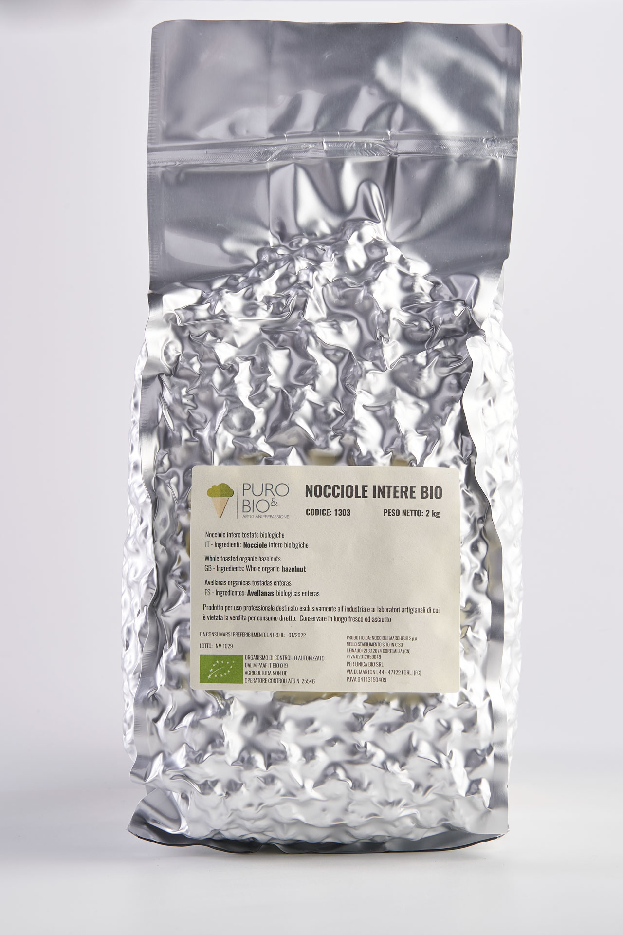 Nocciole intere tostate e pelate biologiche ideali per la decorazione e la farcitura di gelati, sorbetti, yogurt, torte e semifreddi