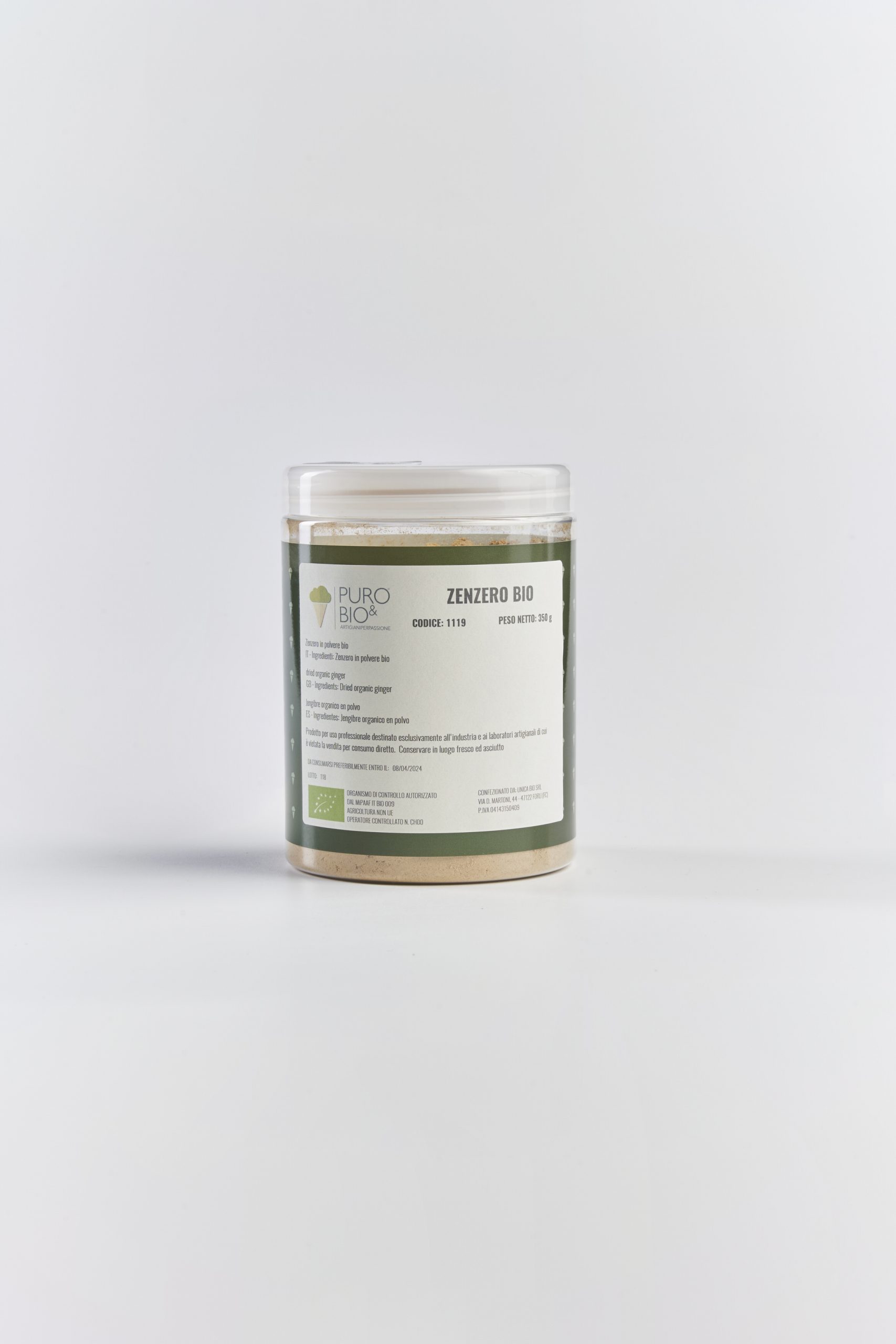 Zenzero in polvere biologico per la produzione di gelati, sorbetti e bevande